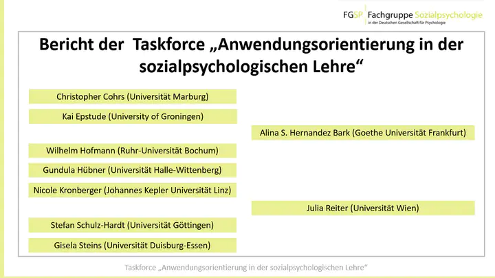 Summary of task force findings on the extent to which applied social psychology is part of German psychology curricula and how it can be integrated in teaching.